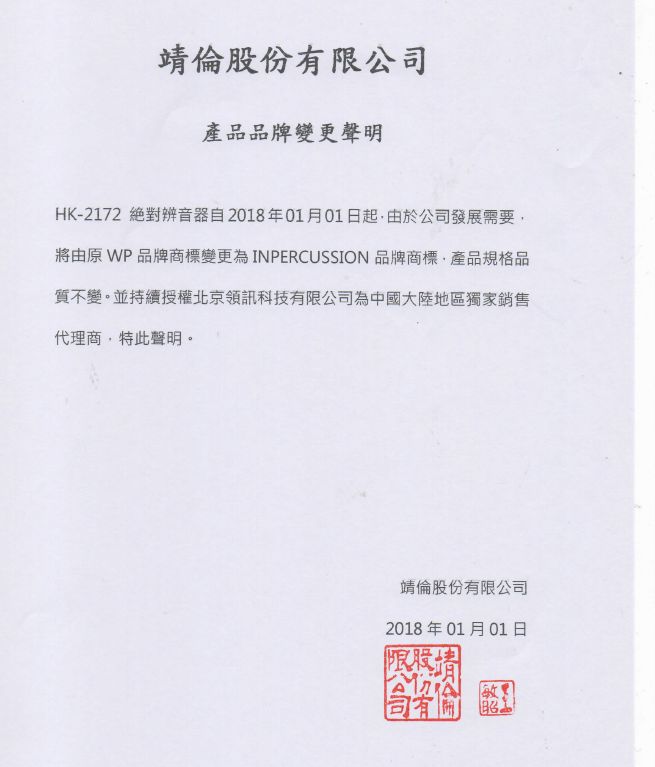 自2018年起,绝对辨音器由WP品牌变更为Inpercussion品牌,并根据市场反馈针对儿童音高特点进行了音域调整,专门为婴幼儿打造,产品品质进一步提高,更适合婴幼儿早教的需要。